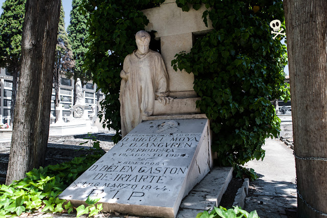 Sin lugar a dudas esta sepultura nos recuerda por composición y metáfora a la de José Arana en el cementerio de Eskoriatza (Gipuzkoa) y por gesto a una de mis favoritas del escultor valenciano, la de Santiago Núñez, en el Cementerio de Nuestra Señora de la Almudena (Madrid), donde podemos ver el retrato de su desconsolada esposa, Pilar Rubio, tendida sobre su lápida.
